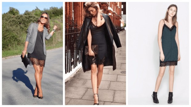 Es kann so einfach wie möglich sein oder mit Spitze, Stoffeinsätzen in Kontrastfarben oder hervorragenden Texturen verziert sein. Seltsamerweise beschlossen die Designer, ein so zartes und einfaches Produkt mit übergroßen Bomberjacken und unhöflichen Lederstiefeln in Einklang zu bringen.