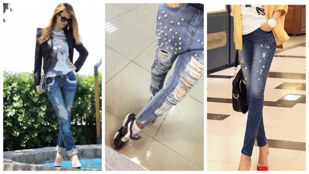 Jeans sind sowohl bei der Arbeit als auch auf einer Party und auf einer Party beliebt und praktisch. Denim sollte dieses Jahr so zerrissen und ausgefranst wie möglich sein. Ja, noch mehr als zuvor. Es ist sehr angenehm in der Hitze. Perlen, die immer häufiger neue Artikel schmücken, haben auch Jeans nicht verschont - in Kombination mit Rissen und losen „Boyfriend“ Modellen sehen sie ungewöhnlich, frisch und attraktiv aus.